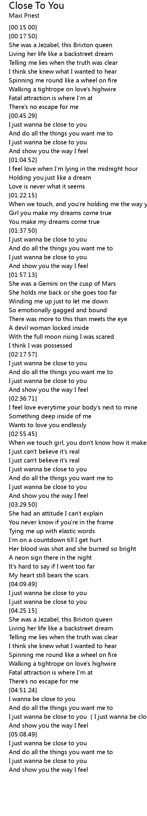 | [04:58.87] | I just wanna be close to you (I just wanna be close to you baby) |