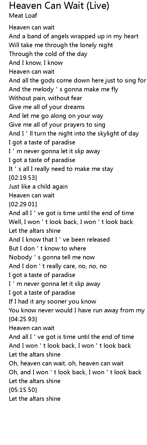 | [04:54.54] | Oh, heaven can wait, oh, heaven can wait |