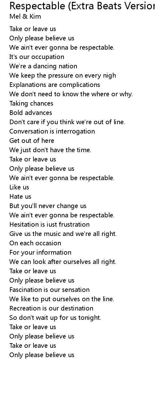 | We ain't ever gonna be respectable. | |