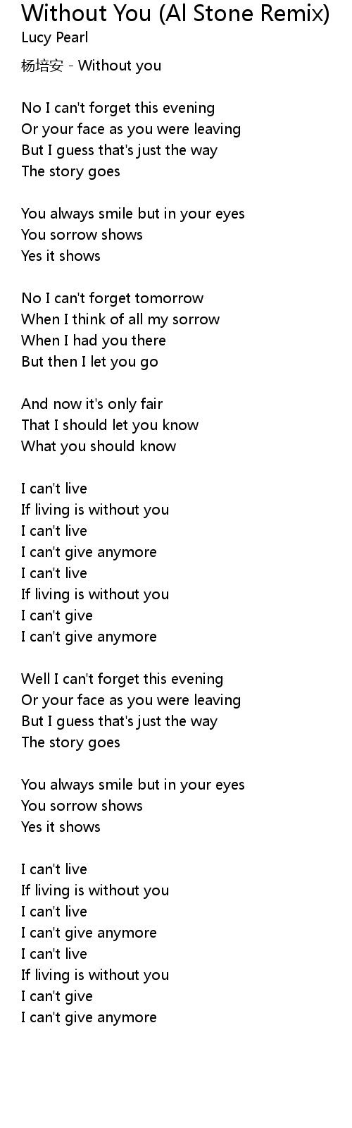 | yáng péi ān Without you | |