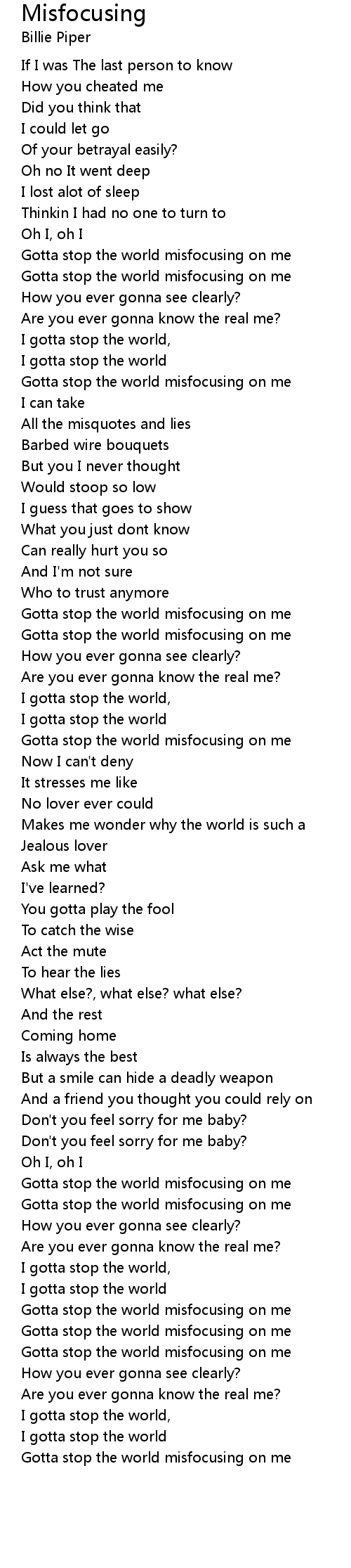 Gotta stop the world misfocusing on me |