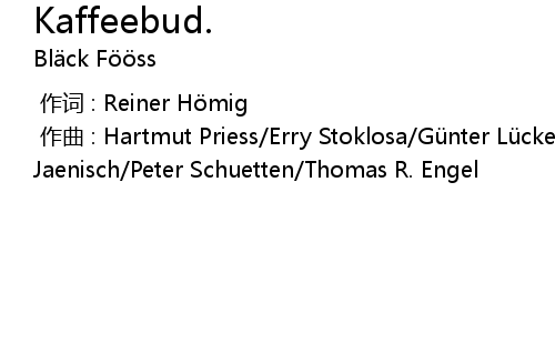 | [00:00.000] | zuo qu : Hartmut Priess Erry Stoklosa Gü nter Lü ckerath Dieter Jaenisch Peter Schuetten Thomas R. Engel |