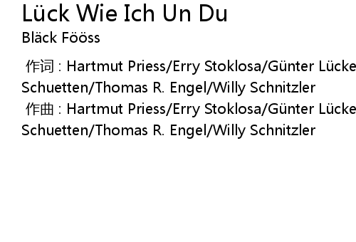 | [00:00.000] | zuò cí : Hartmut Priess Erry Stoklosa Gü nter Lü ckerath Peter Schuetten Thomas R. Engel Willy Schnitzler |