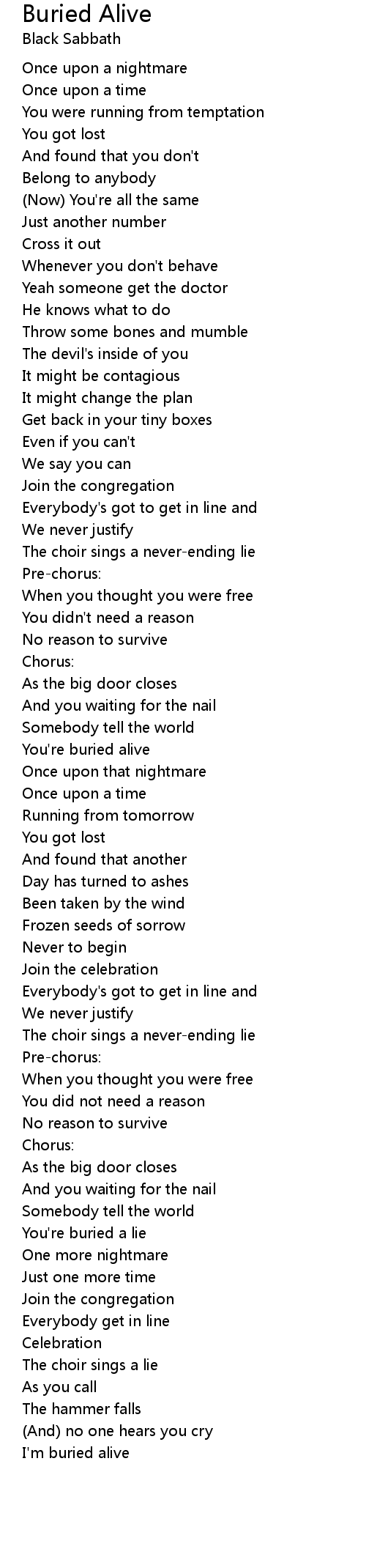 I'm buried alive |