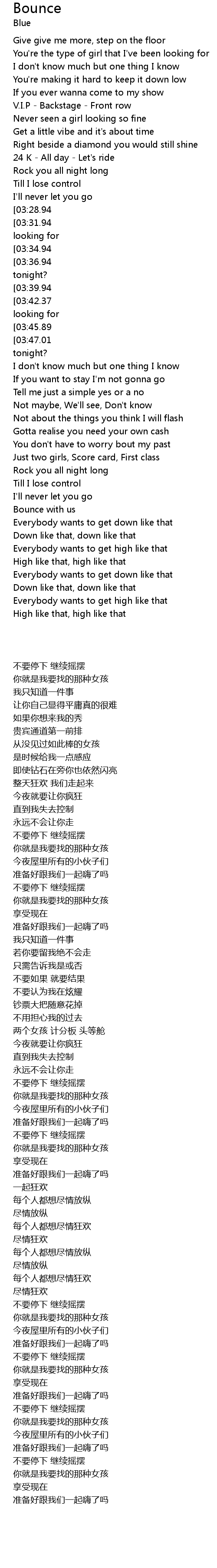 | [02:15.61][03:47.01][03:27.32][01:16.73] | Are you gonna bounce bounce with us tonight? |