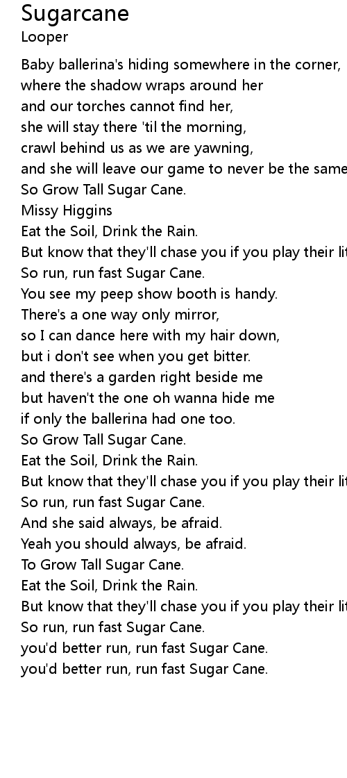| [00:50.56] | So run, run fast Sugar Cane. |