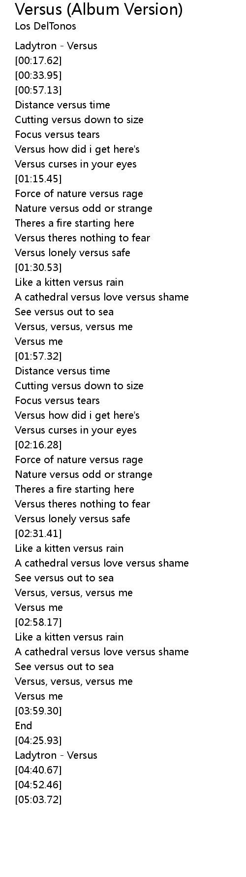 Versus (Album Version) Lyrics