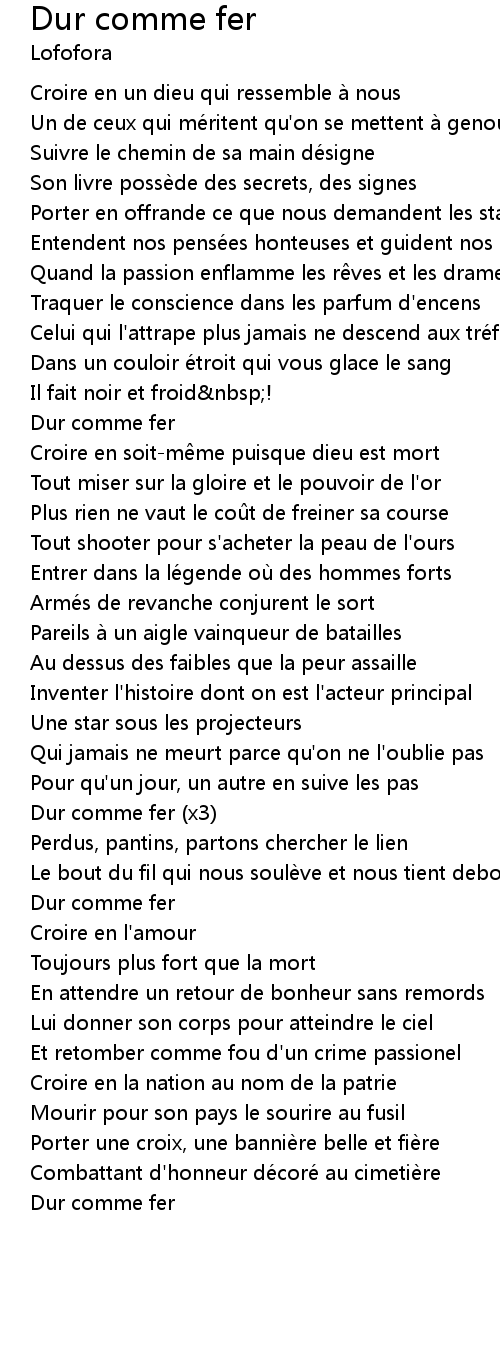 | Song | Dur comme fer |