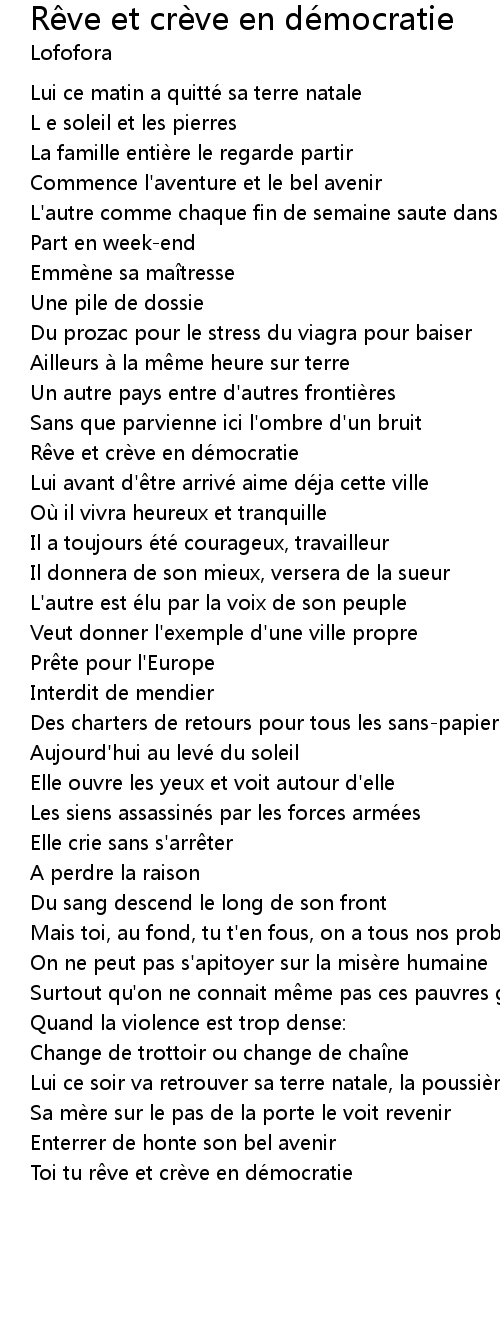 | Surtout qu' on ne connait m me pas ces pauvres gens qui saignent | |