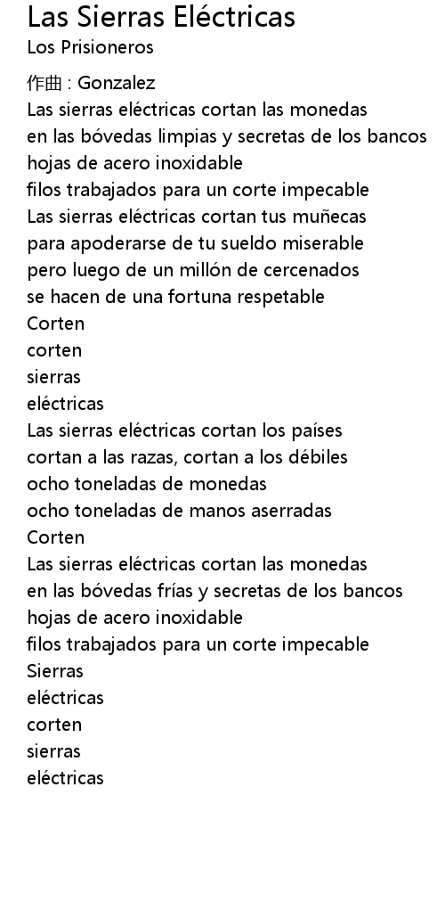 | Las sierras elé ctricas cortan tus mu ecas | |