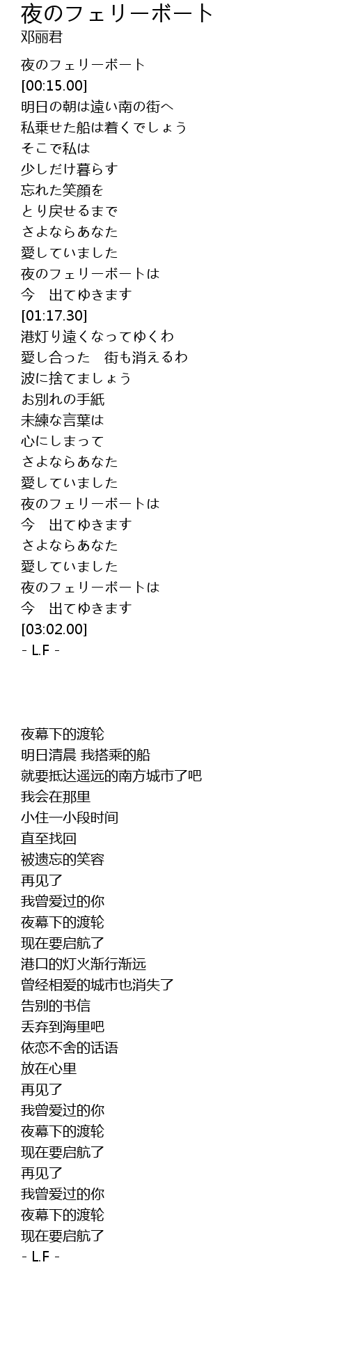 | [01:36.18] | 港灯り遠くなってゆくわ |