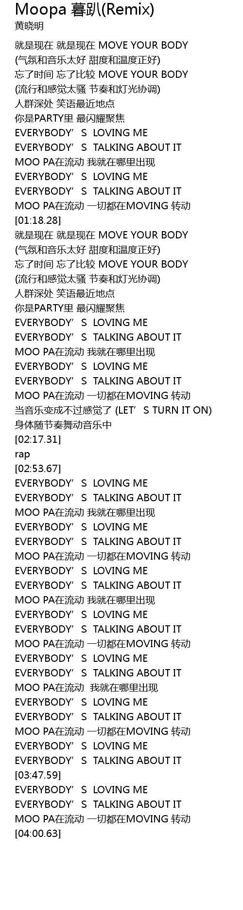 | [03:39.24] | MOO PA在流动 一切都在MOVING 转动 |