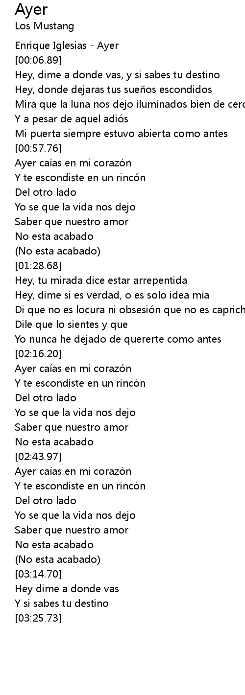| [00:04.89] | Enrique Iglesias - Ayer |