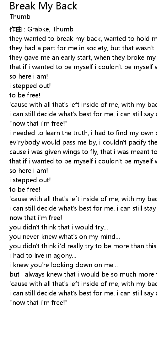 | they wanted to break my back, wanted to hold me back from beeing free. | |