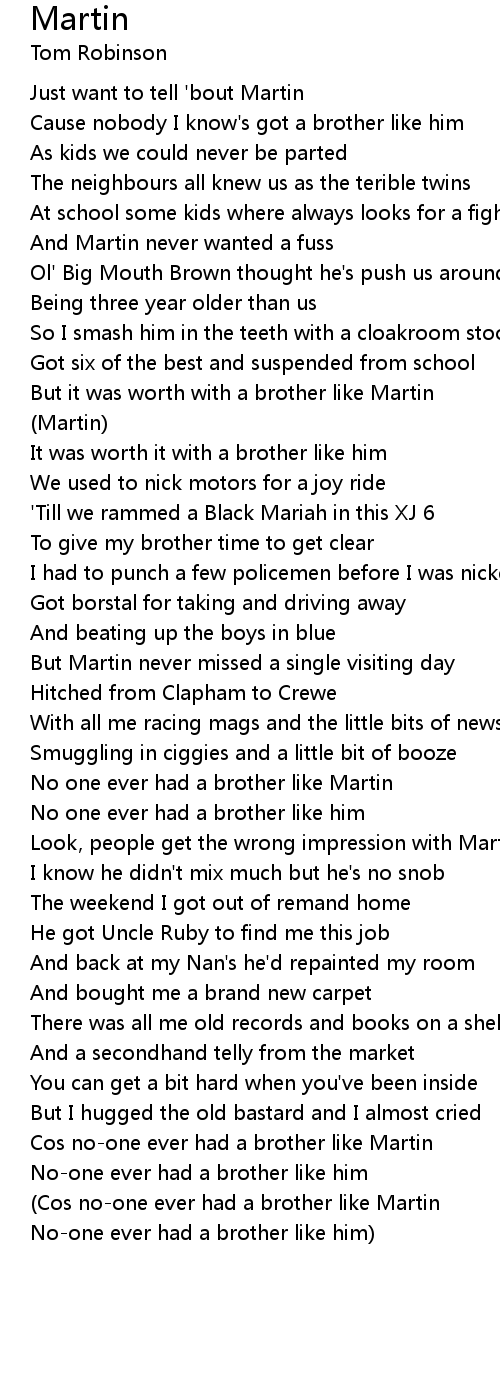 (Cos no-one ever had a brother like Martin |