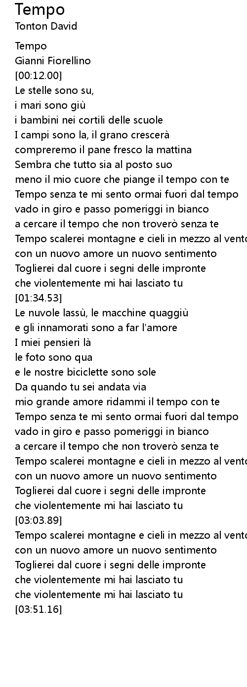 | [00:55.03] | Tempo senza te mi sento ormai fuori dal tempo |