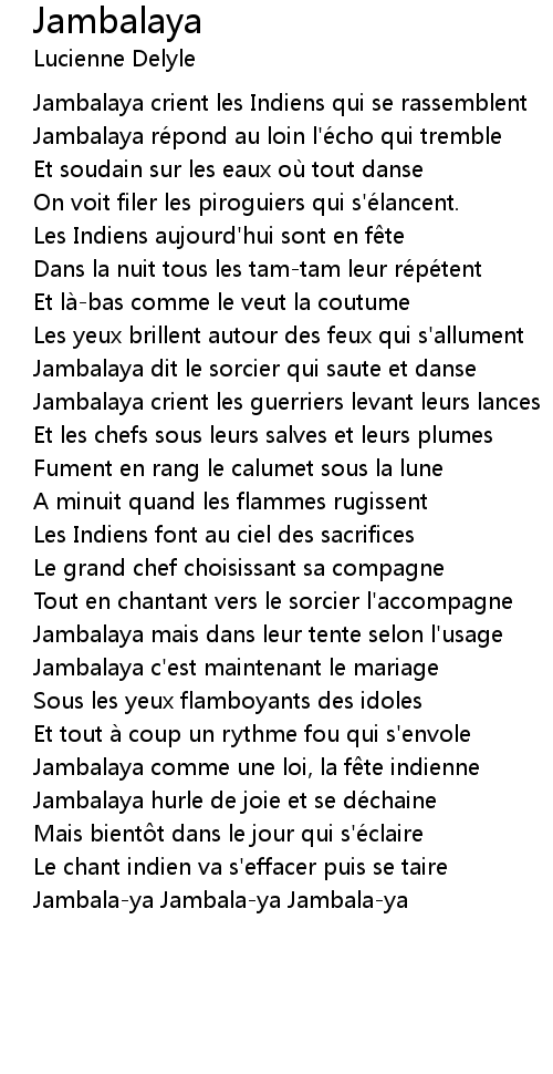 | Jambalaya re pond au loin l'e cho qui tremble | |