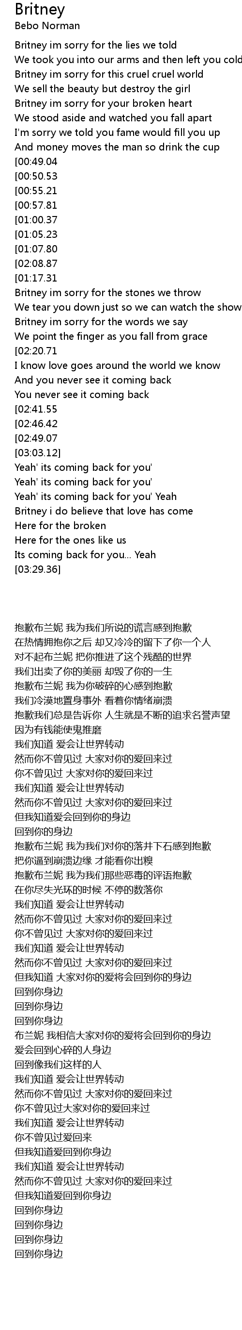 Britney im sorry for the words we say |