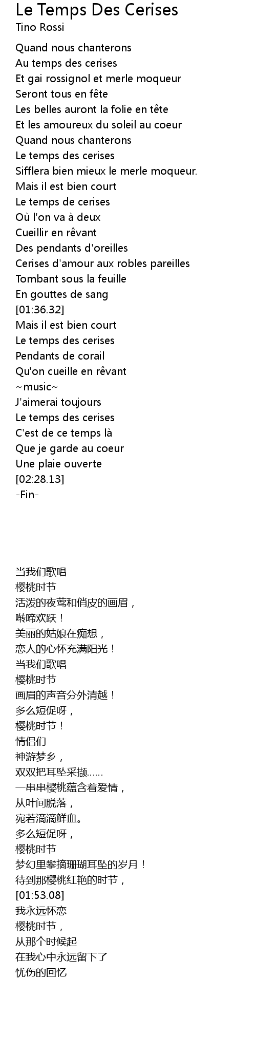| [01:20.52] | Cerises d' amour aux robles pareilles |