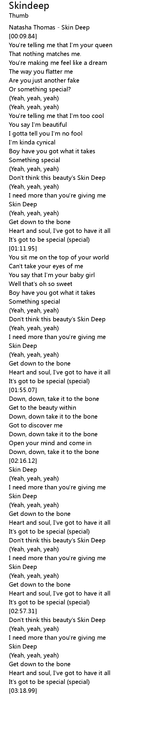 | [00:51.42] | Don't think this beauty's Skin Deep |