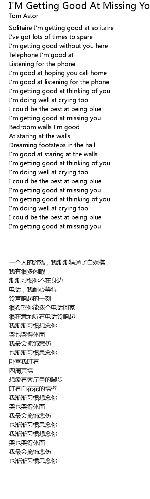 I'm getting good at missing you |