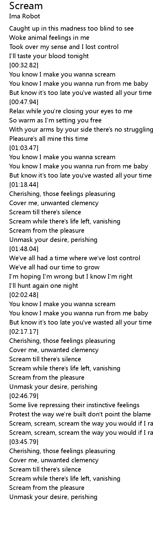 | [03:32.54] | Scream, scream, scream the way you would if I ravaged your body |