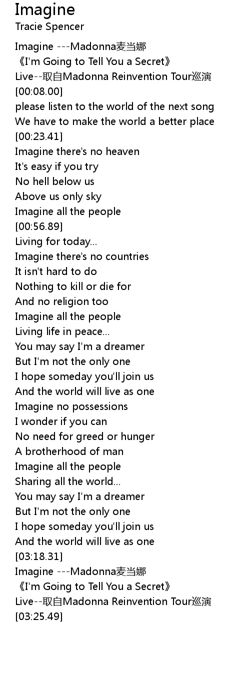 | [03:19.28] | Imagine ---Madonna麦当娜 |