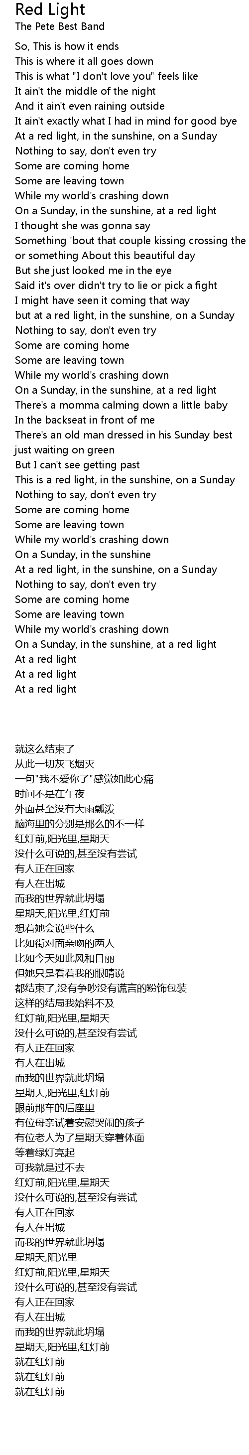 At a red light, in the sunshine, on a Sunday |