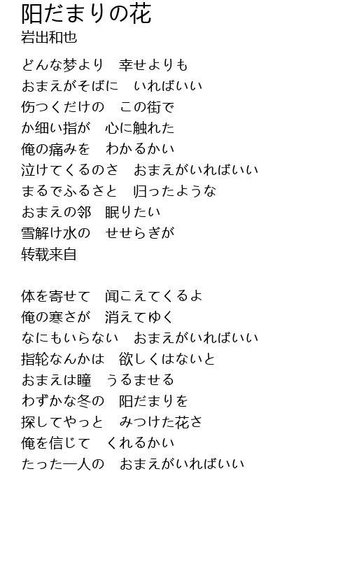 泣けてくるのさ おまえがいればいい |