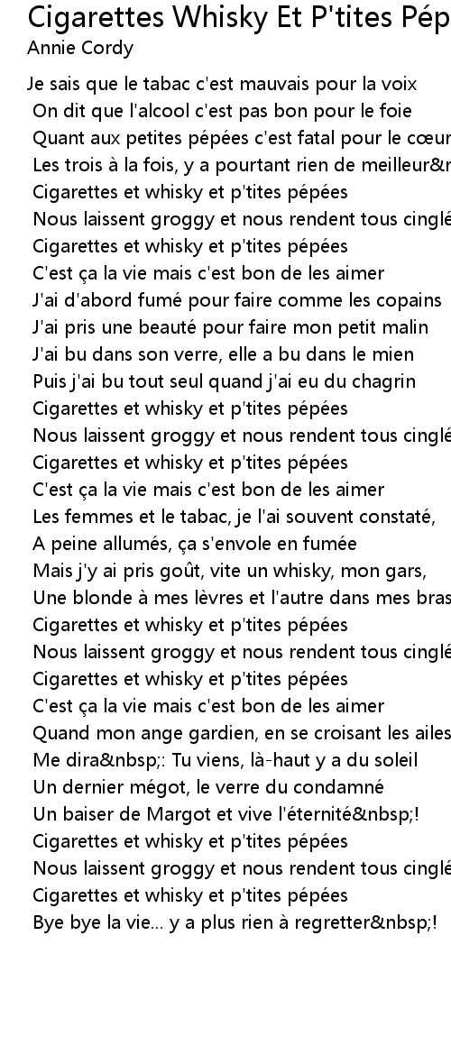 | Song | Cigarettes Whisky Et P'tites Pépées |