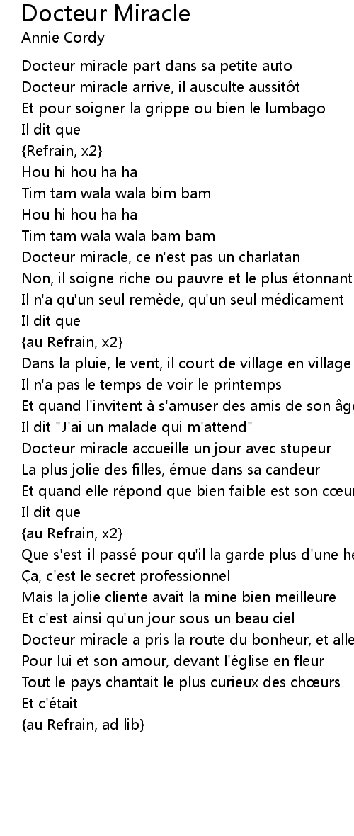 | Docteur miracle a pris la route du bonheur, et allez donc nbsp! | |