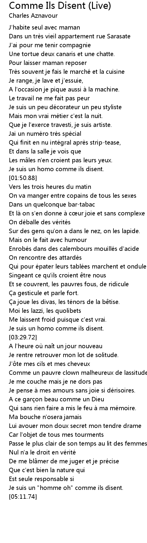 | [03:22.26] | Je suis un homo comme ils disent. |