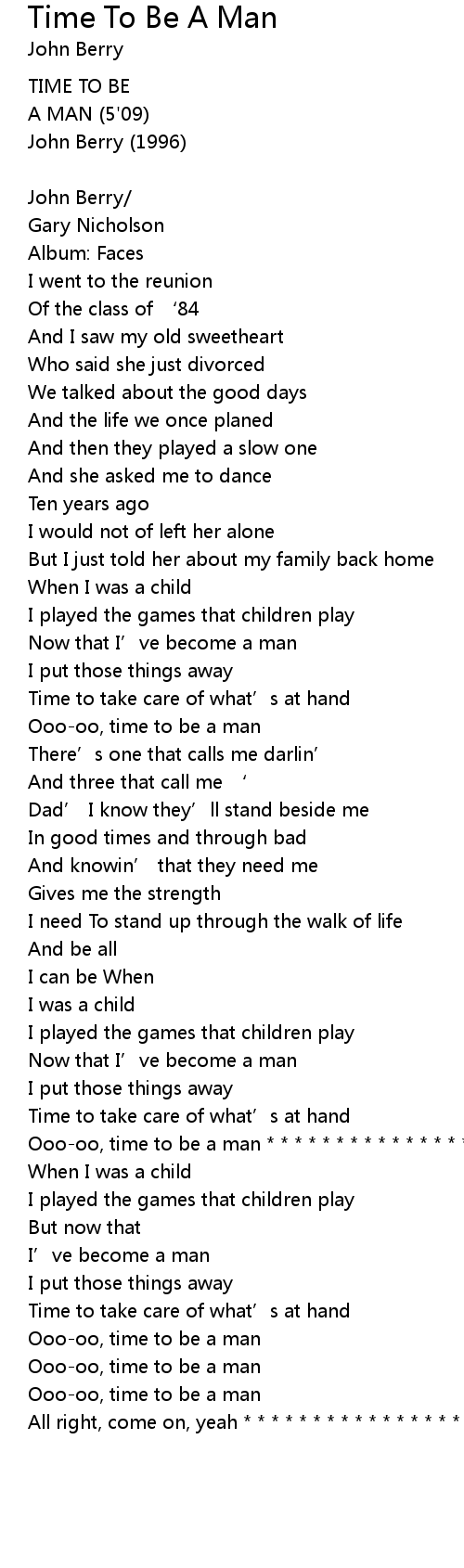 | Song | Time To Be A Man |