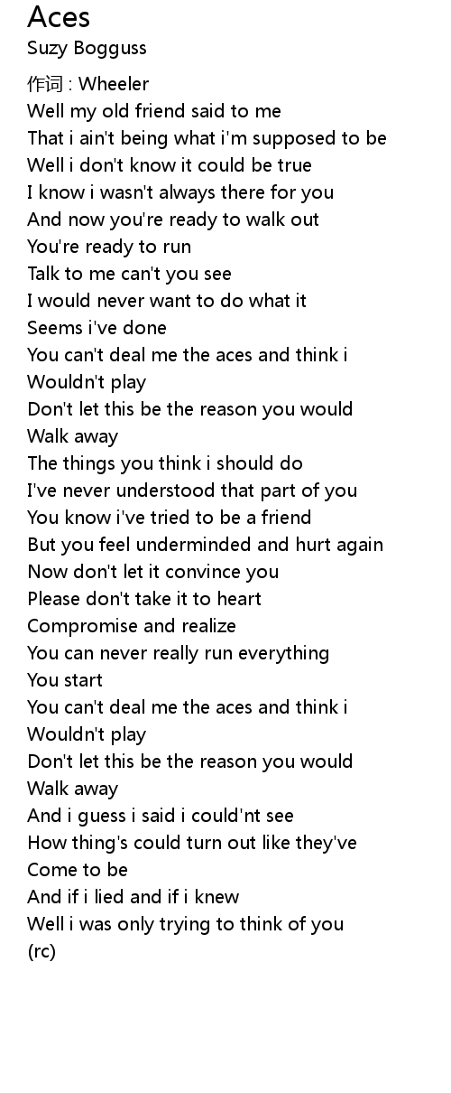| You can' t deal me the aces and think i | |