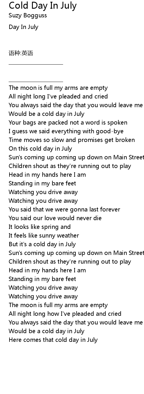 | But it' s a cold day in July | |