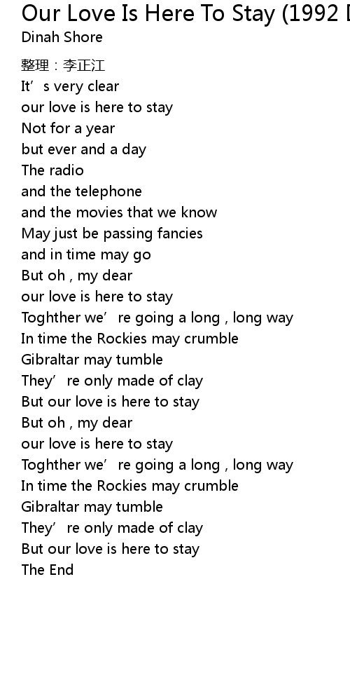 | Song | Our Love Is Here To Stay (1992 Digital Remaster) |