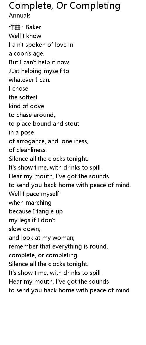| Silence all the clocks tonight. | |