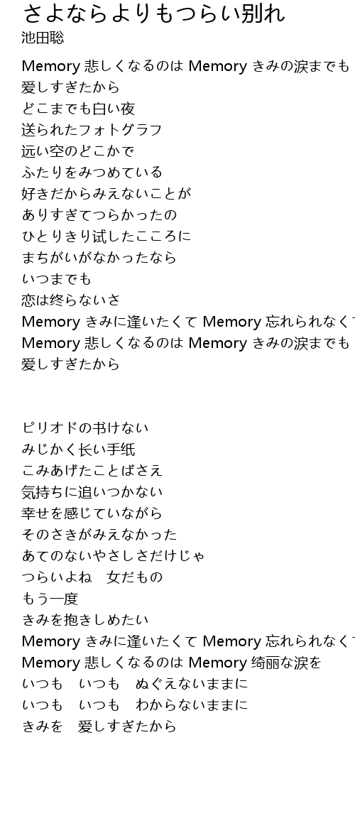 | Memory 悲しくなるのは Memory きみの涙までも | |
