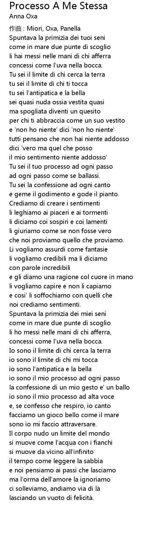| Song | Processo A Me Stessa |