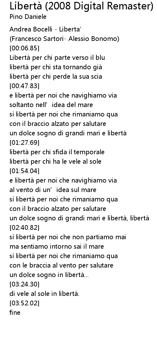 | [02:53.64] | sì libertà per noi che rimaniamo qua |