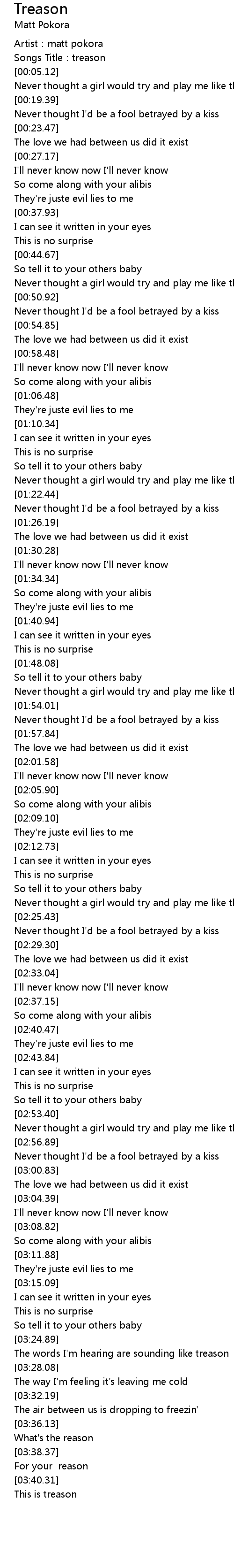 | [00:03.51] | Songs Title:treason |