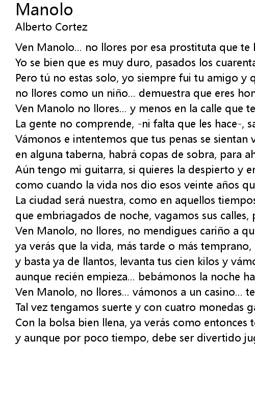 | Ven Manolo, no llores, no mendigues cari o a quien no sabe darlo | |