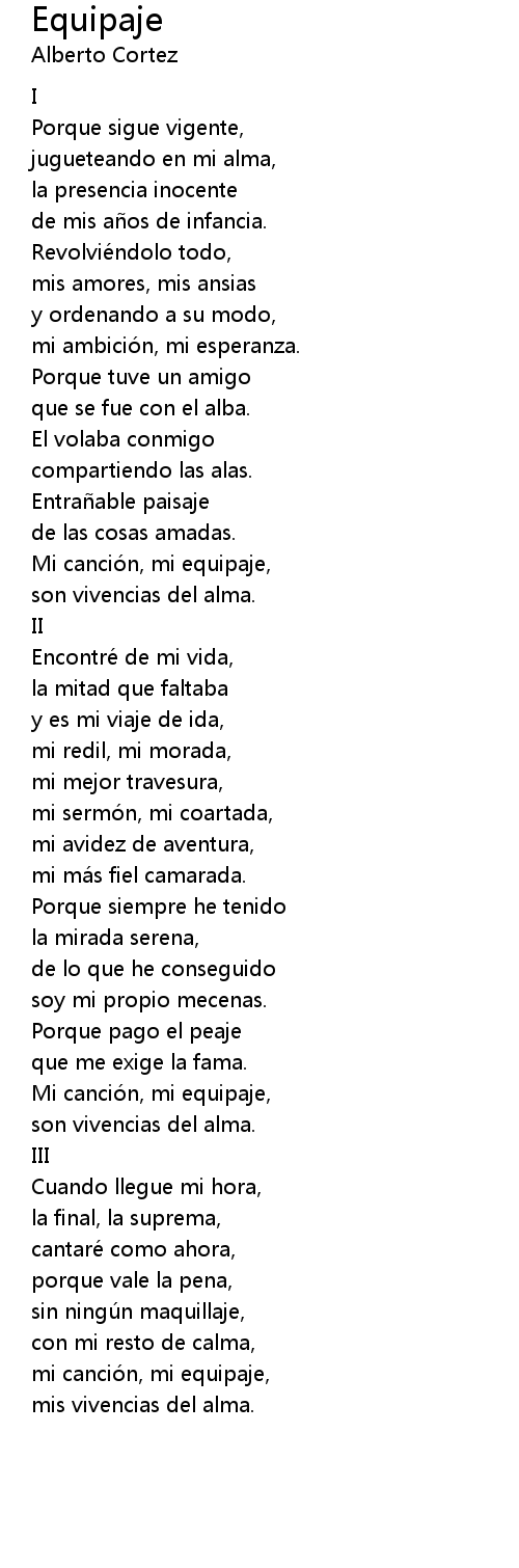 | mi canción, mi equipaje, | |