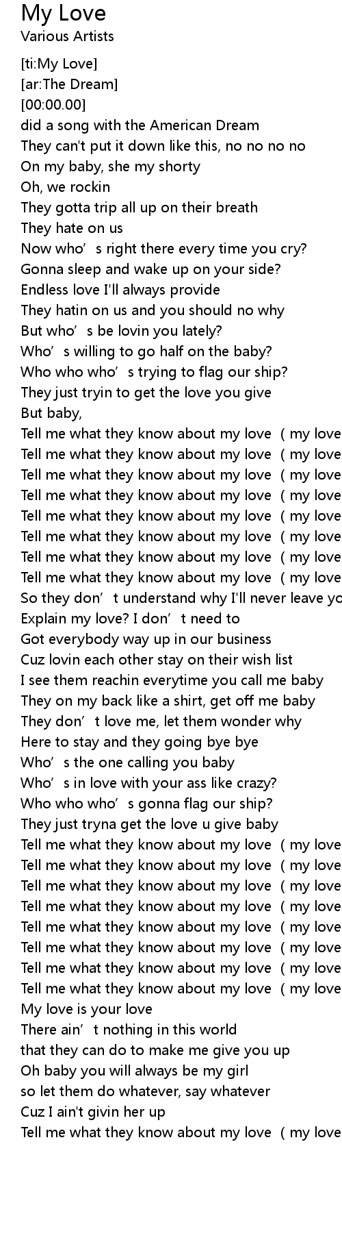 | [01:53.46] | Tell me what they know about my love (my love) |