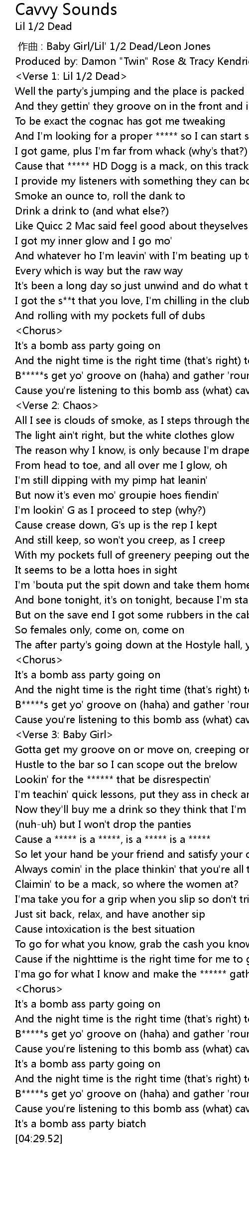 | [03:53.96] | B*****s get yo' groove on (haha) and gather 'round |