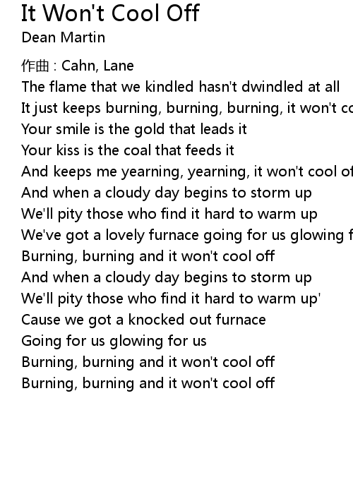 | Song | It Won't Cool Off |