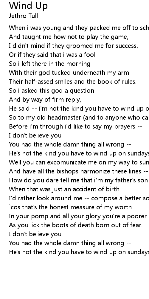 He said -- i'm not the kind you have to wind up on sundays. |