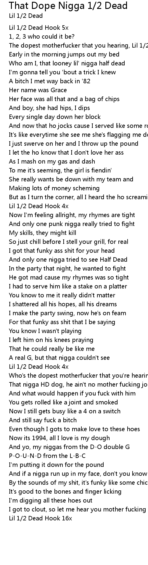 The dopest motherfucker that you hearing, Lil 1/2 Dead |