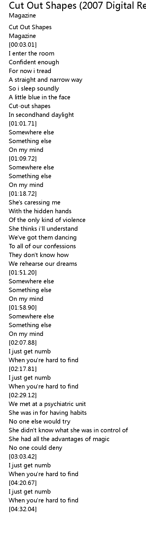 Cut Out Shapes (2007 Digital Remaster) Lyrics