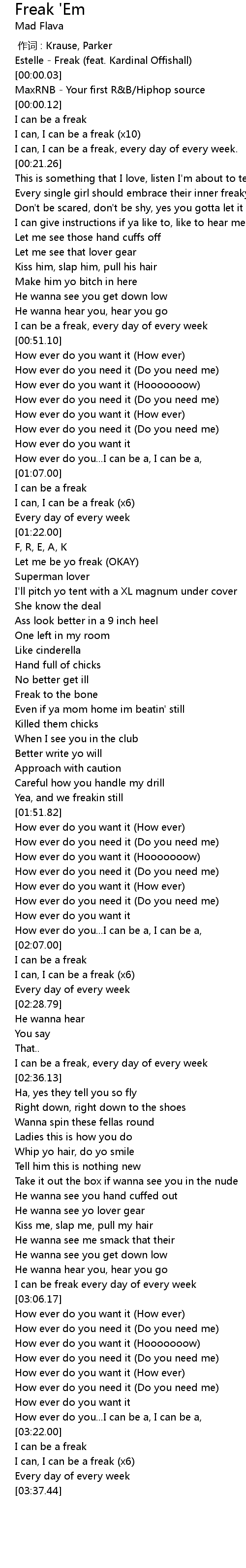 | [01:24.49] | Let me be yo freak OKAY |